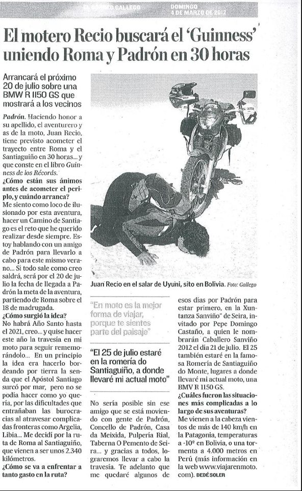 Se trata de mover mi actual moto, una BMW R 1150 GS desde La Plaza del Vaticano hasta el Monte Santiaguíño de Padrón en menos de 30 horas.